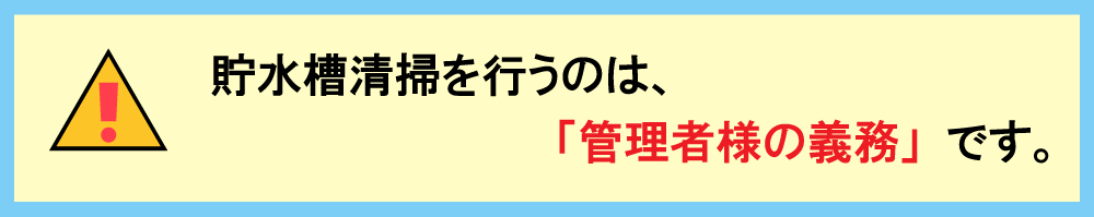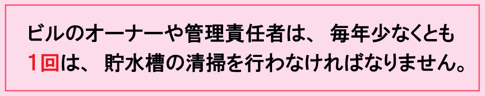 そのため、ビルのオーナーや管理責任者には、貯水槽を適切に管理する義務があります。